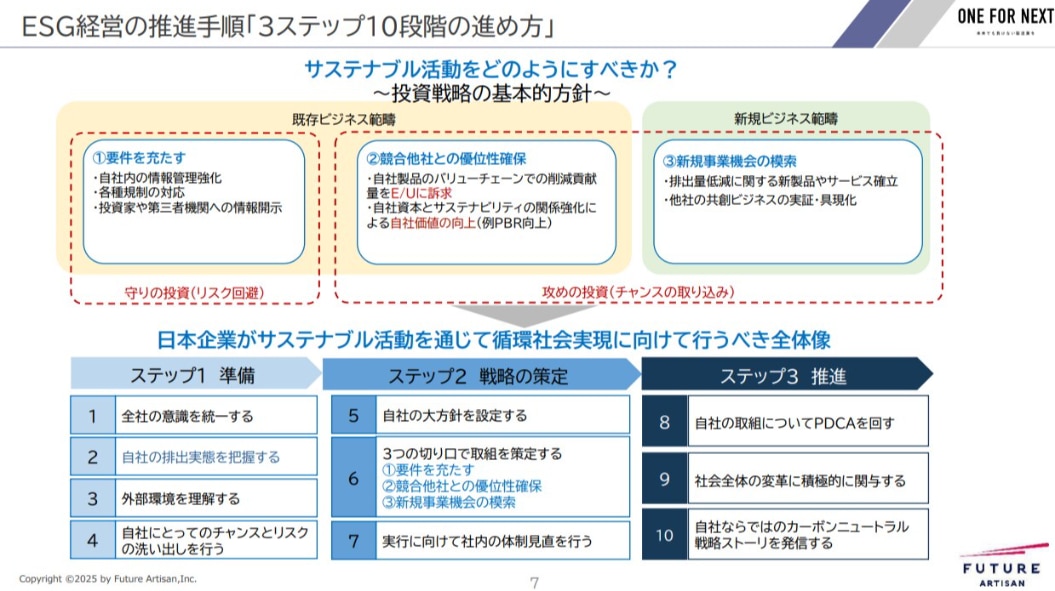 “形式的なチェックリスト”にとどまらず、自社らしいESG戦略を構築するためには、どのようなステップが必要なのでしょうか?