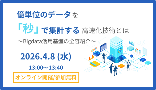 | 名称 | 億単位のデータを「秒」で集計する高速化技術とは ~Bigdata活用基盤の全容紹介~ |