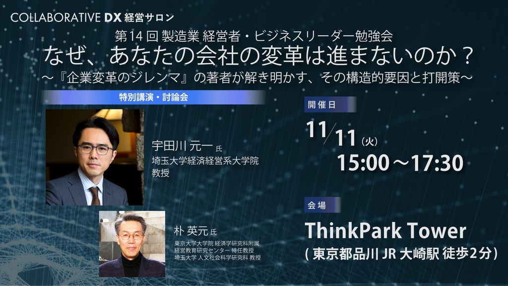 | 名称 | 【Collaborative DX経営サロン】 第14回 製造業 経営者・ビジネスリーダー勉強会 なぜ、あなたの会社の変革は進まないのか? ~『企業変革のジレンマ』の著者が解き明かす、その構造的要因と打開策~ |