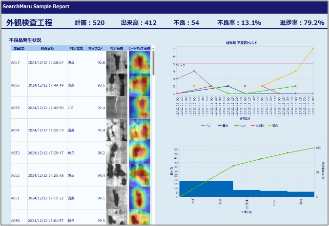 蓄積されたデータは統計的に解析でき、不良発生の傾向分析や原因究明に役立てることで、継続的な品質改善活動を支援します。