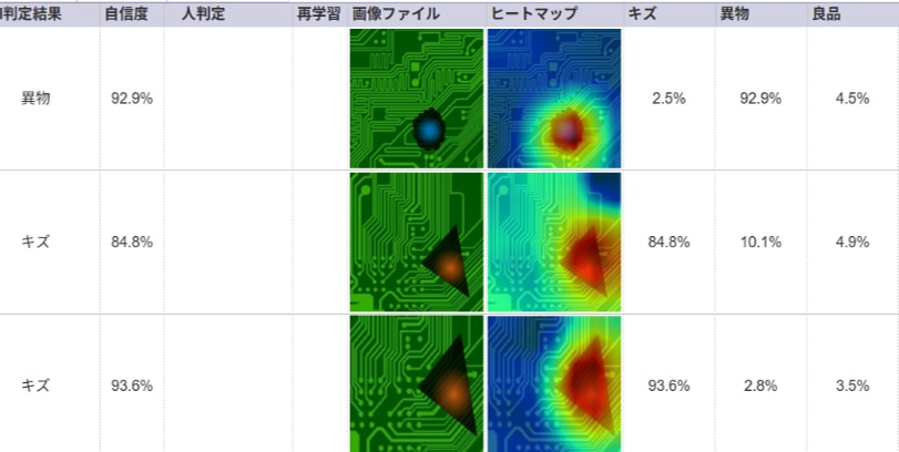 ヒートマップにより、AIがどの部分を特徴として捉えたかを視覚的に確認できます。